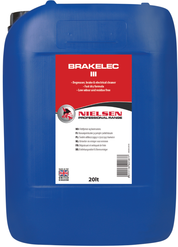 Brakelec III is the quick drying, fast evaporating solvent degreaser that incorporates highly refined solvents, designed to clean and degrease surfaces while leaving them residue free.