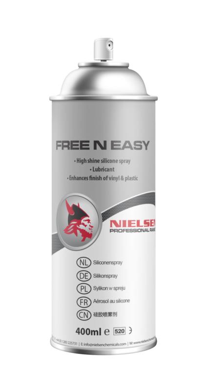 Free N Easy is a high shine water repellent silicone spray designed to protect, shine and lubricate.
