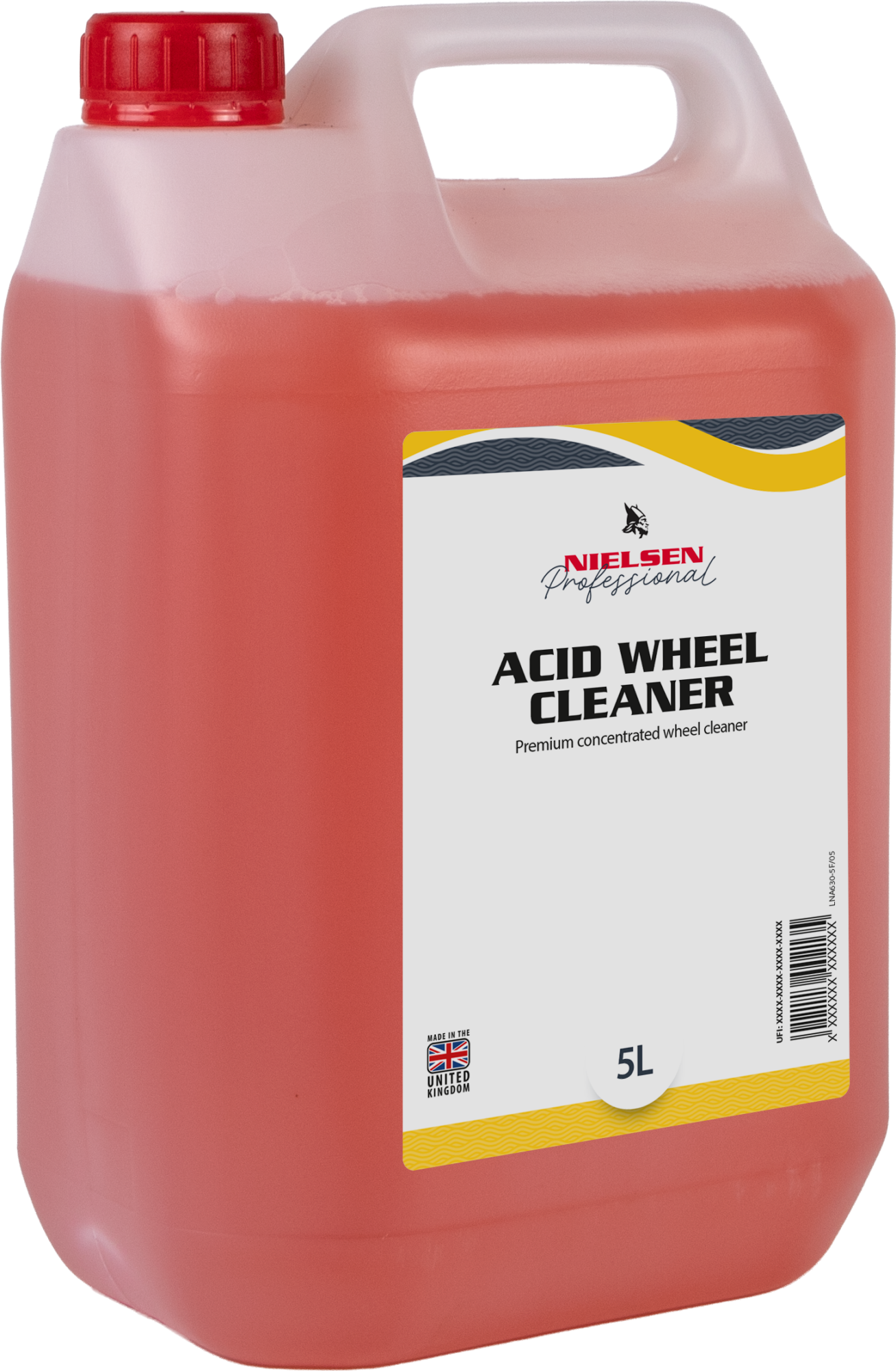 Acid Wheel Cleaner is the powerful wheel cleaner designed to quickly and efficiently remove even the heaviest deposits of brake dust and grime from wheels. Acid Wheel Cleaner contains an acidic blend which dissolves the bond between brake dust and the wheel allowing for rapid removal – without the need for excessive scrubbing. Rejuvenating and restoring the appearance of the wheel. The excellent dilution rates make the product very economical in use, saving time and money by reducing waste.